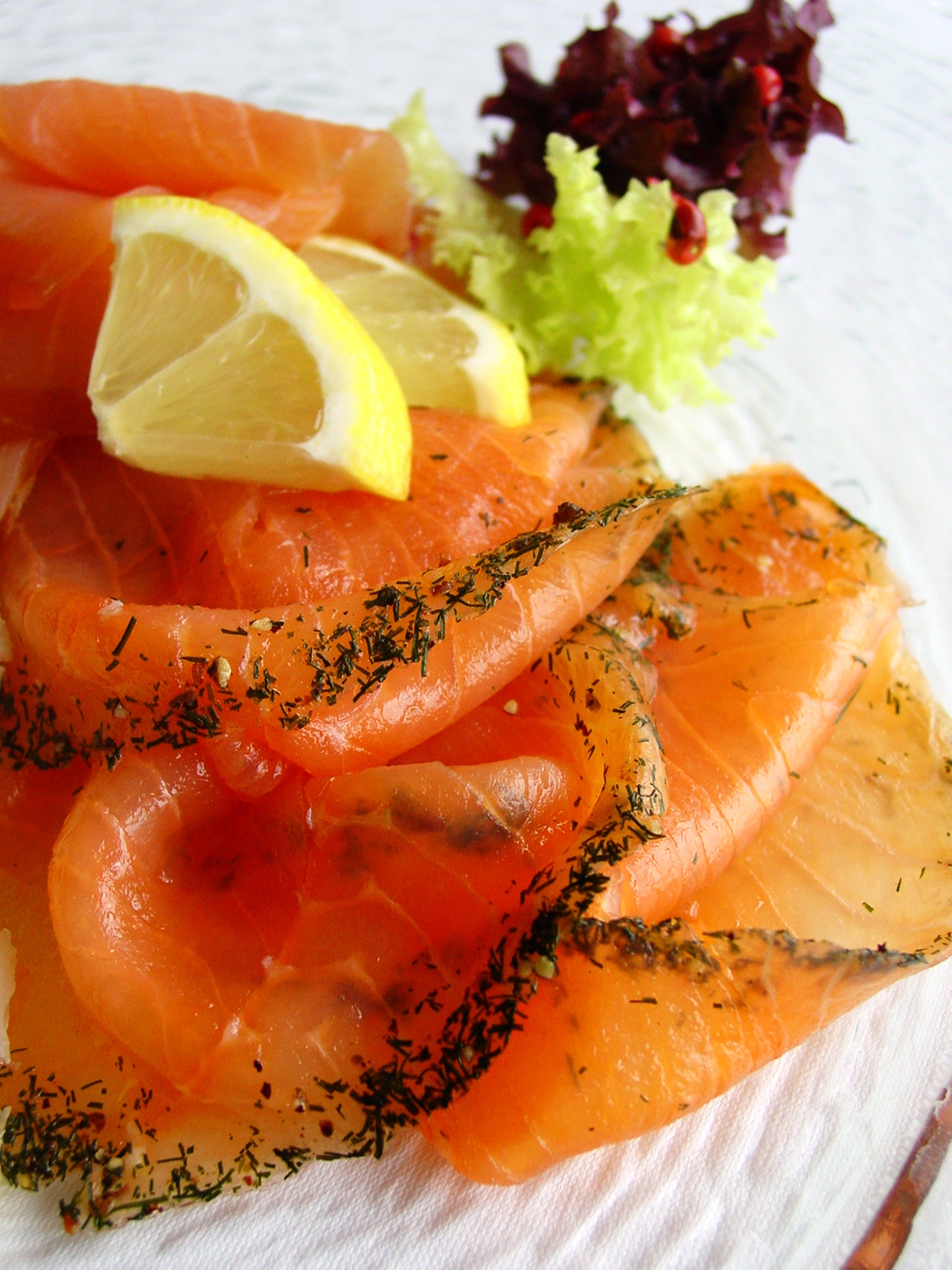 Lachsspezialität gebeizt/ Dill-Kräuter-Marinade mit einem Schuss Weinbrand/ Dill Senf Sauce/ ca. 500 g geschnitten