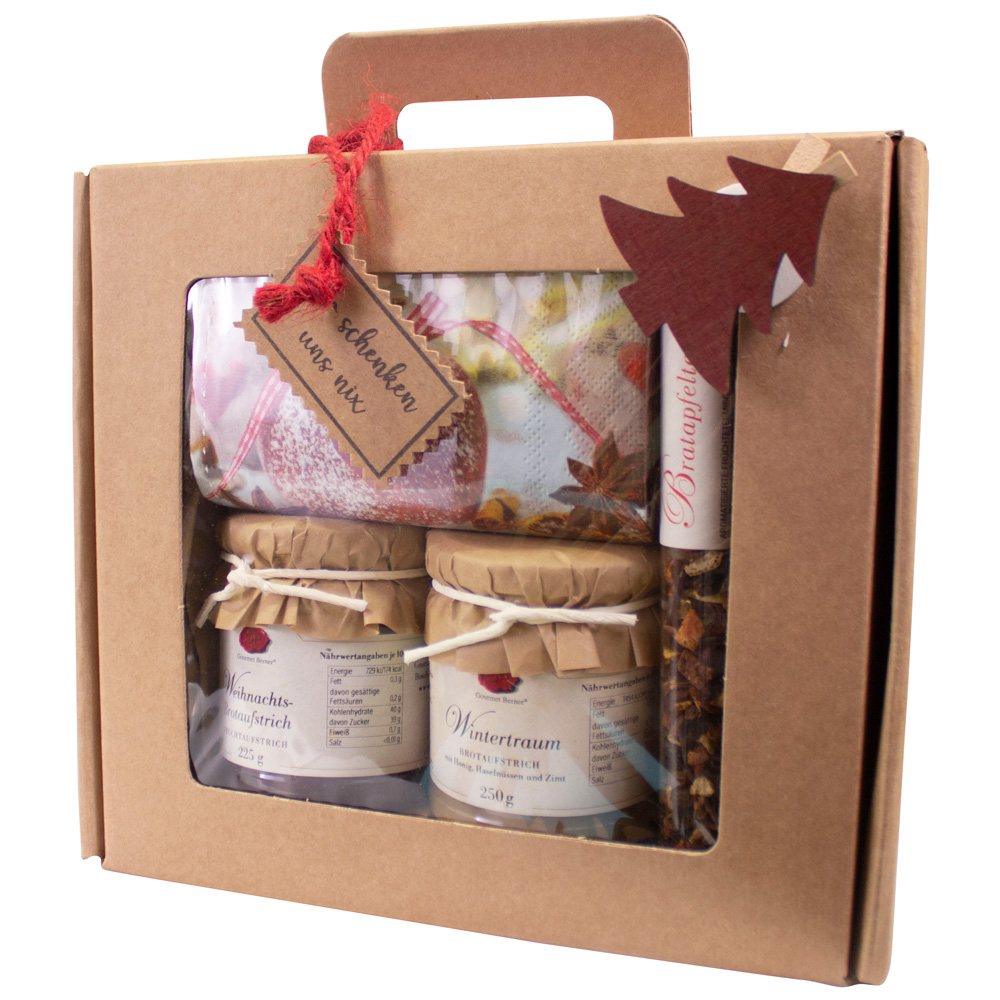 Gourmet Box mit Anhänger "wir schenken uns nix", 20 x 23,5 x 9 cm
