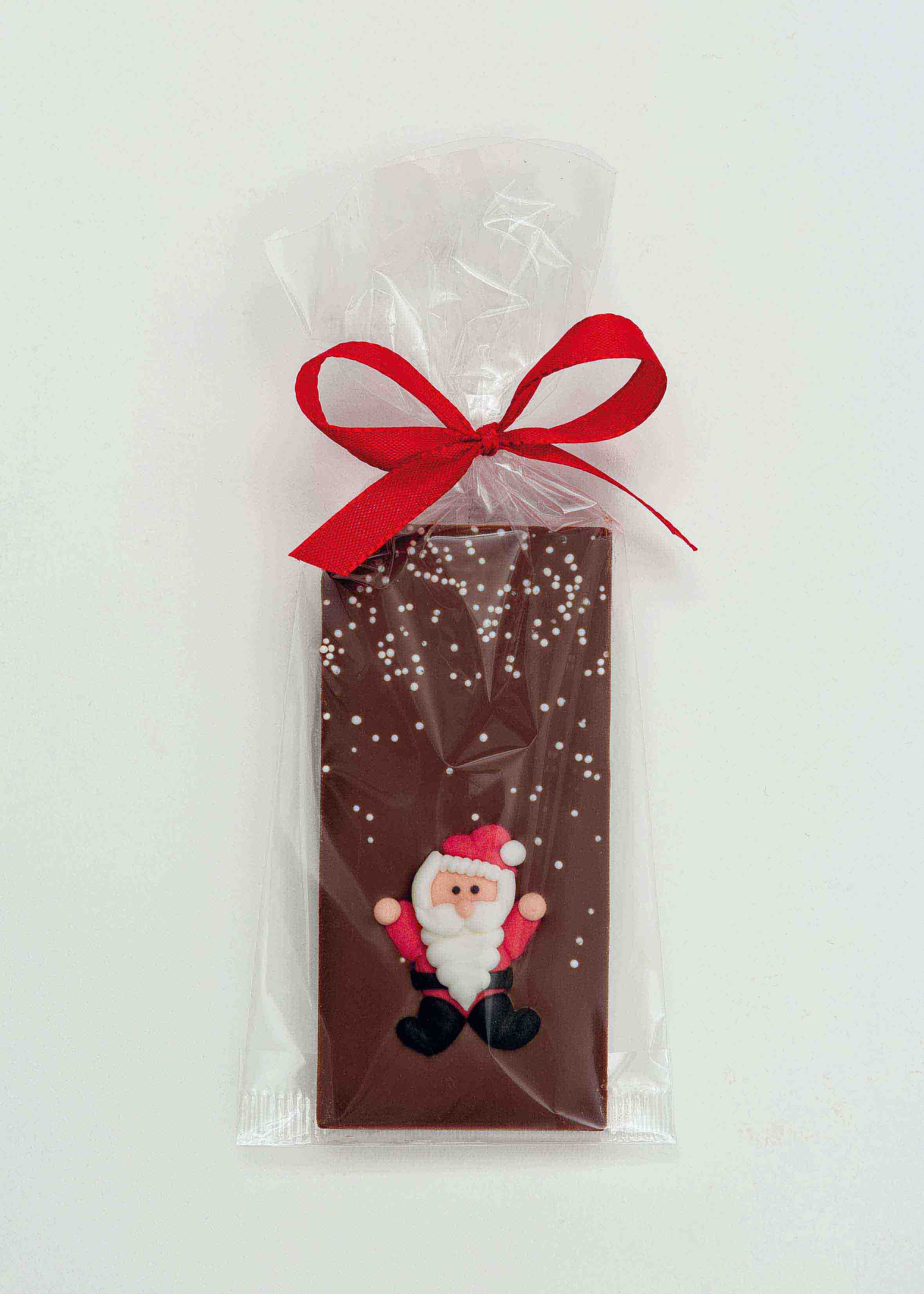 Hausgemachte Vollmilchschokoladentafel mit saisonalem Dekor